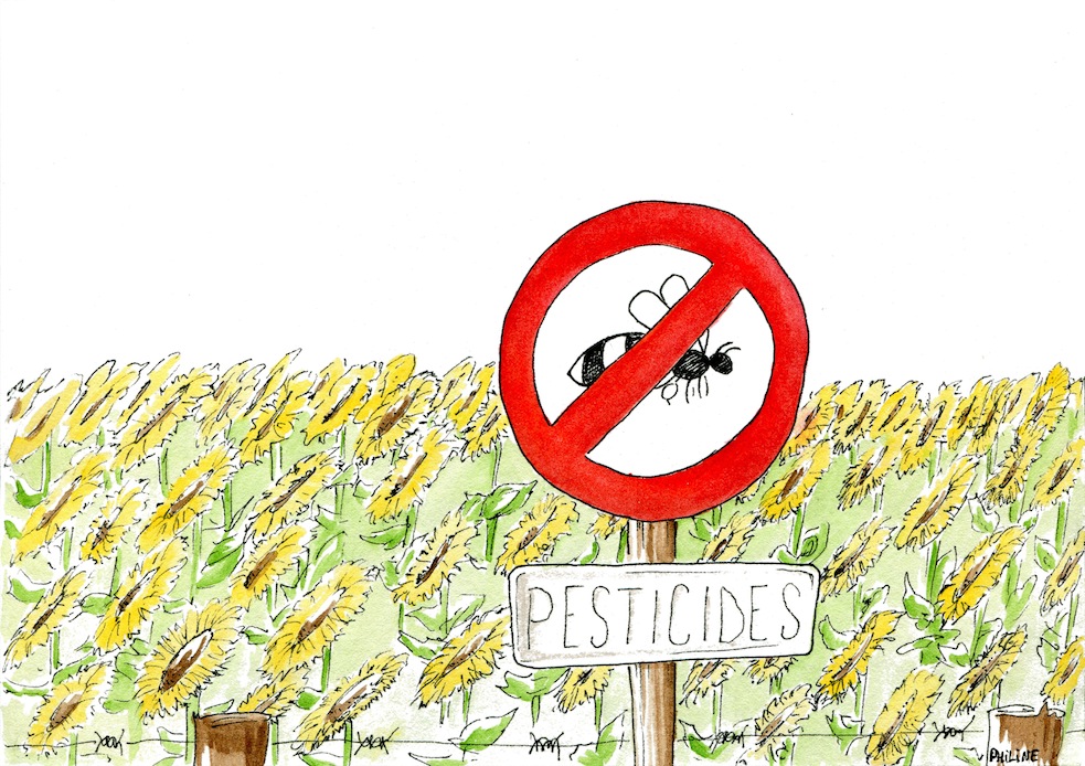 Malheureusement, en plus de cette perte d'habitats dans ces milieux sauvages, l'agriculture dite "conventionnelle" a recours à de puissants produits chimiques, notamment des pesticides (comme les néonicotinoïdes) qui détruisent les plantes non cultivées (les champs de blés ne sont plus parsemés de coquelicots ou de nielles des blés) et de nombreux insectes ravageurs.