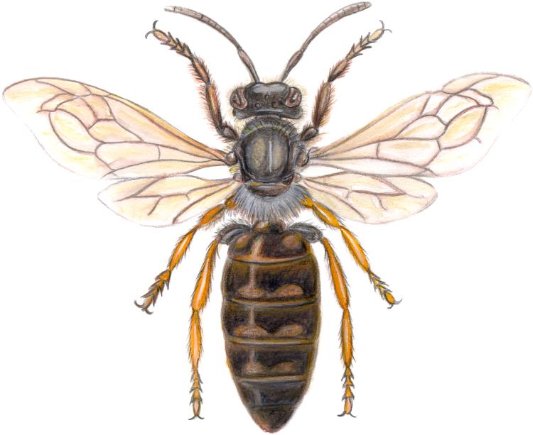 Allure trappue Assez velue (thorax) Brune à noirâtre, bandes orangées Deux paires d’ailes Parfois, pelottes de pollen aux pattes Végétarienne (nectar, pollen) Ne peut piquer qu’une seule fois Défensive |