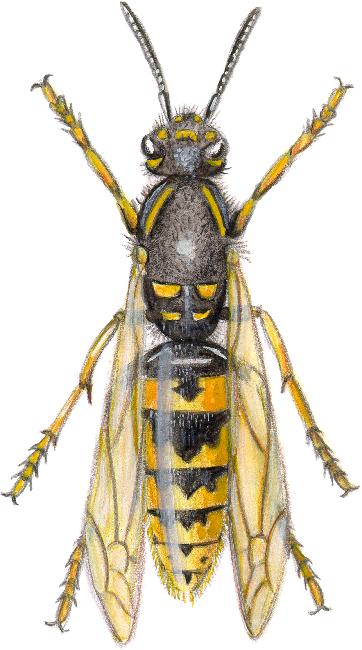 Allure fine Taille bien marquée (« taille de guêpe ») Deux paires d’ailes Corps glabre, sans poils Jaune aux motifs noirs bien nets Carnivore Peut piquer plusieurs fois Agressive |