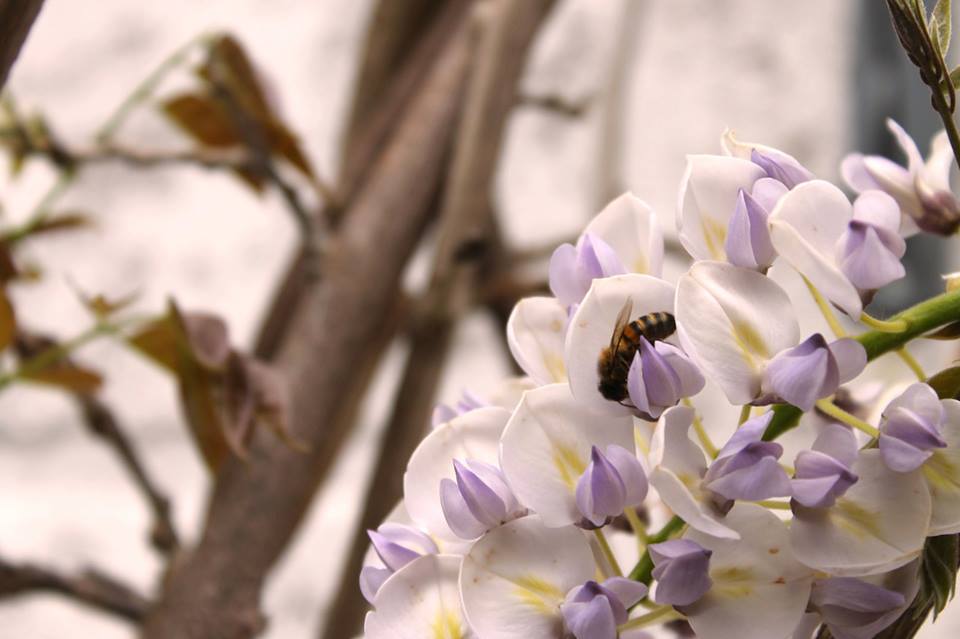 Vigoureuse, cette grimpante volubile a vite fait de coloniser façades, pergolas et gloriettes, pour peu qu'elle ait un support où s'entortiller. Elle offre, de mai à juin (et parfois une seconde floraison, moins abondante, en août), de grosses grappes de fleurs bleues, mauves ou blanches, à l'odeur caractéristique, bien butinées par les abeilles et les bourdons qui y récoltent nectar et pollen les jours où il fait chaud (la plante est délaissée par temps frais).