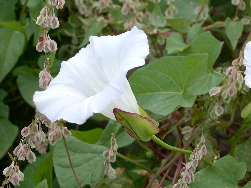 Maudit par bien des jardiniers, le liseron est une plante herbacée volubile qui s'entortille autour de tout support pour se hisser haut vers la lumière.