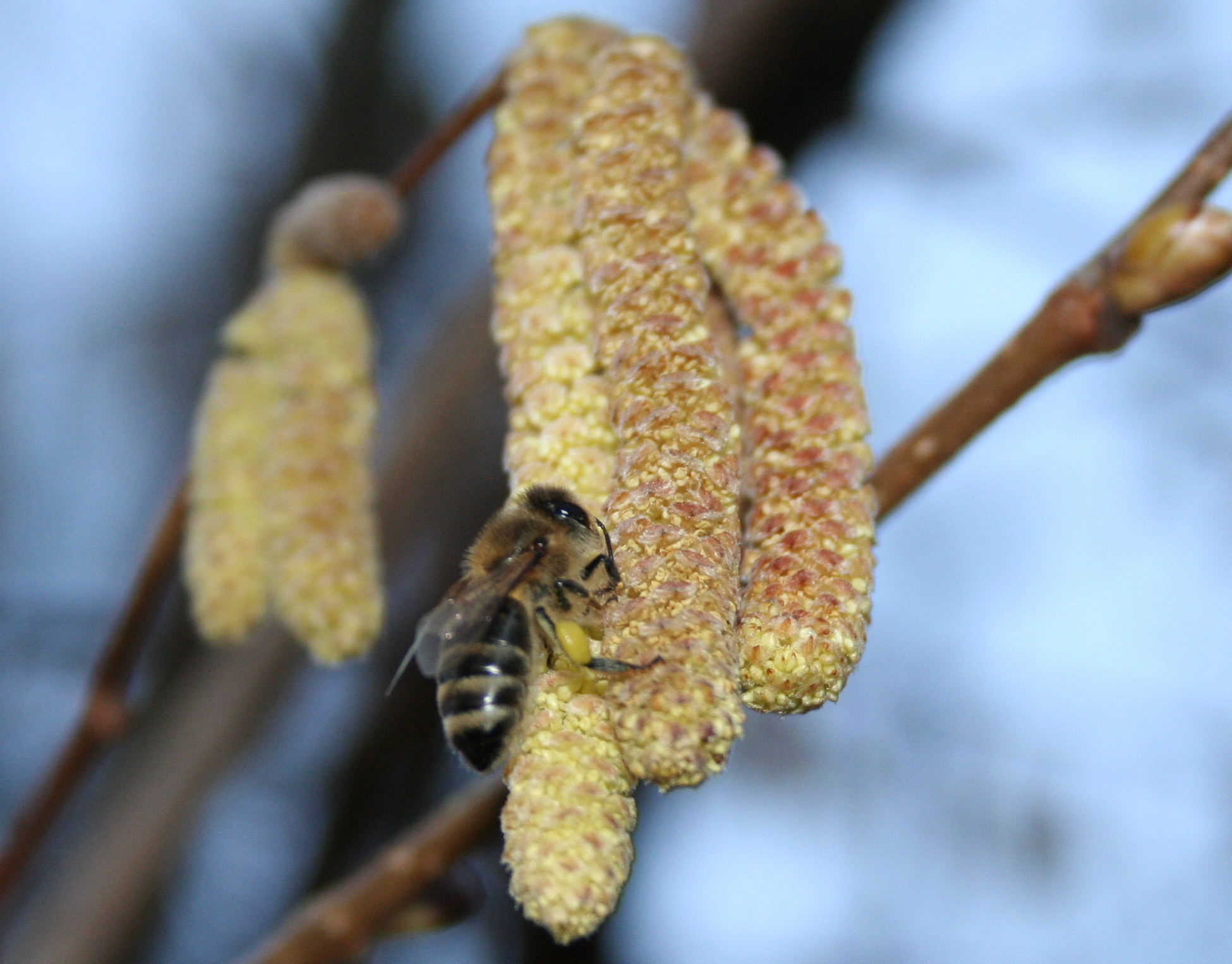 Néanmoins, l'abondance de pollen en cette sortie d'hiver en fait la première des ressources pour les abeilles domestiques, qui viendront y butiner dès les beaux jours pour reconstituer les stocks du précieux or poudreux, indispensable à la croissance des larves et donc au redéveloppement printanier de la colonie. Pour ce faire, les noisetiers doivent se trouver à proximité des ruches, car les abeilles ne volent pas encore très loin en ce début de saison. La plante n'aurait, par contre, que peu voire pas d'intérêt pour les bourdons et abeilles sauvages.