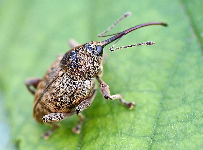 Les coléoptères, quant à eux, sont représentés par l'Altise du noisetier, le Cigarier du noisetier, le Capricorne des pousses et, bien sûr, plusieurs espèces de Charançons, dont le Balanin des noisettes (Curculio nucum).